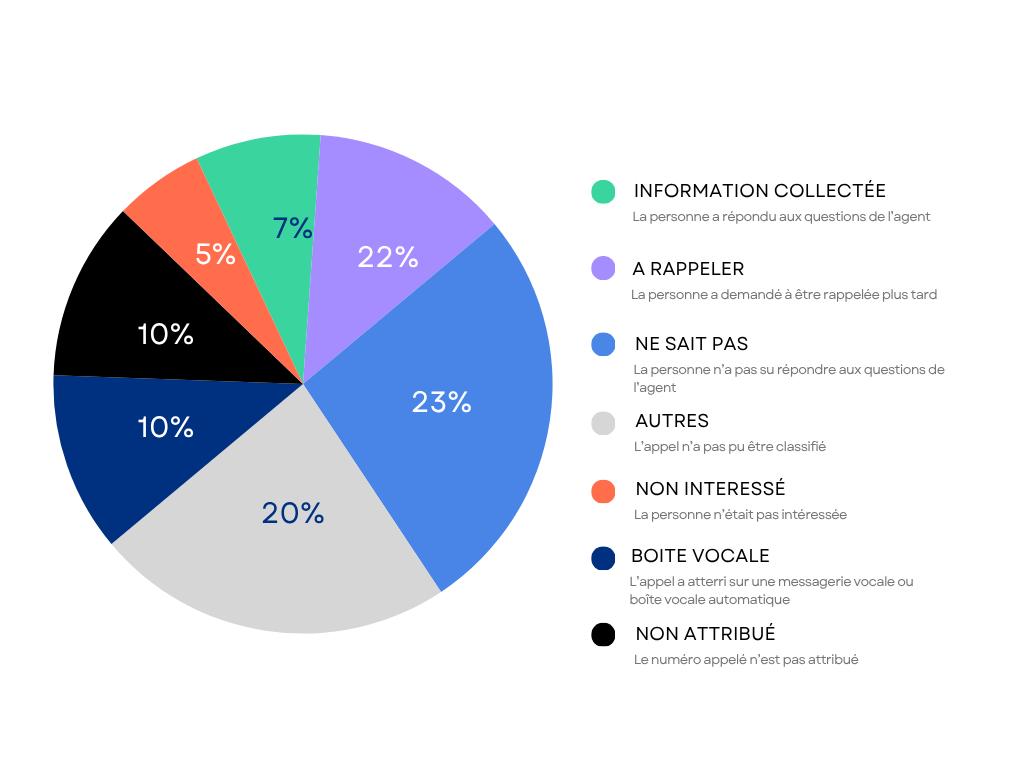 - 1 appel sur 2 a permis de récolter au moins une information durant l'appel